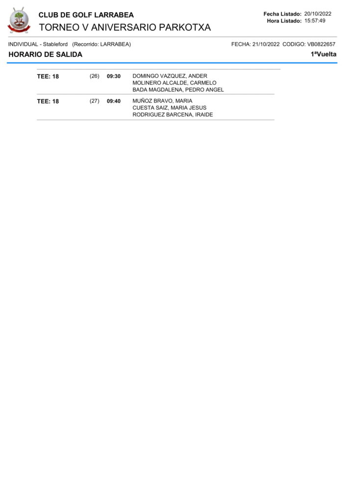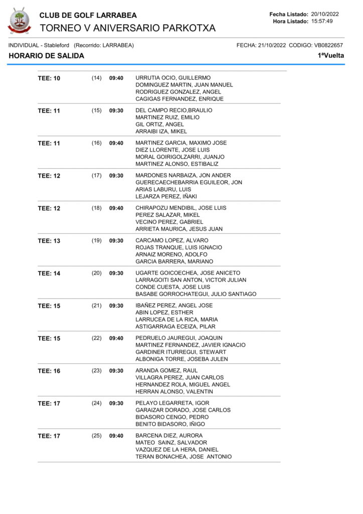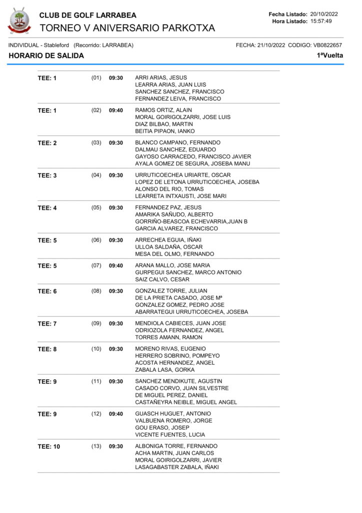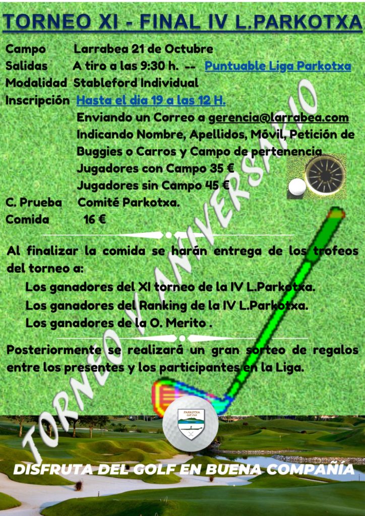 IV Liga Parkotxa, Torneo 11 y V Aniversario Parkotxa. Campo de golf LARRABEA, 21 de octubre 2022