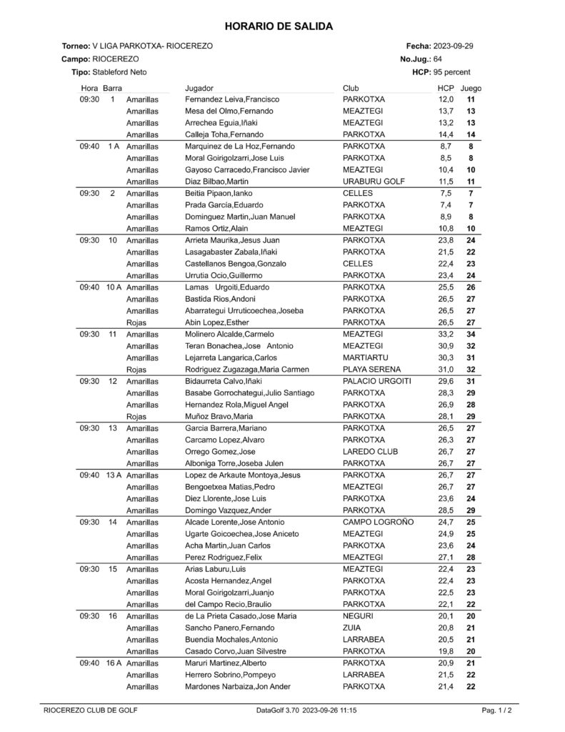 V Liga Parkotxa. X Torneo Campo Golf RIOCEREZO, 29 de Septiembre 2023