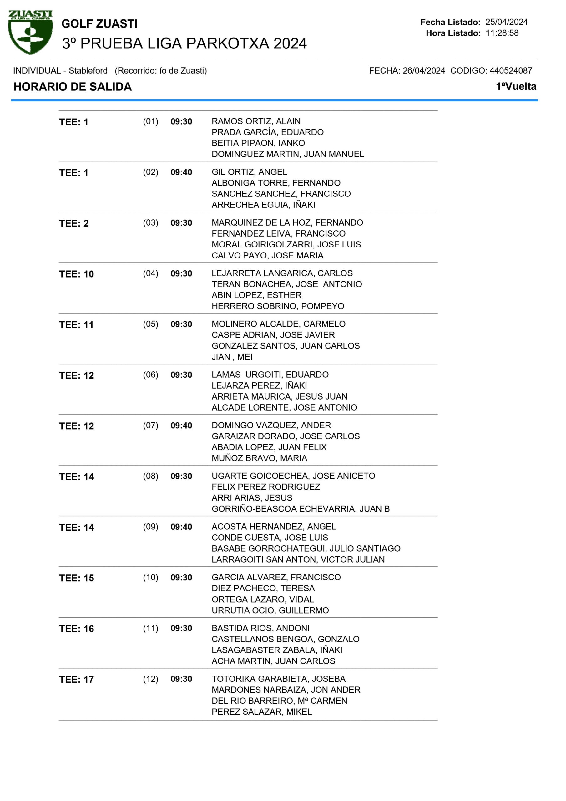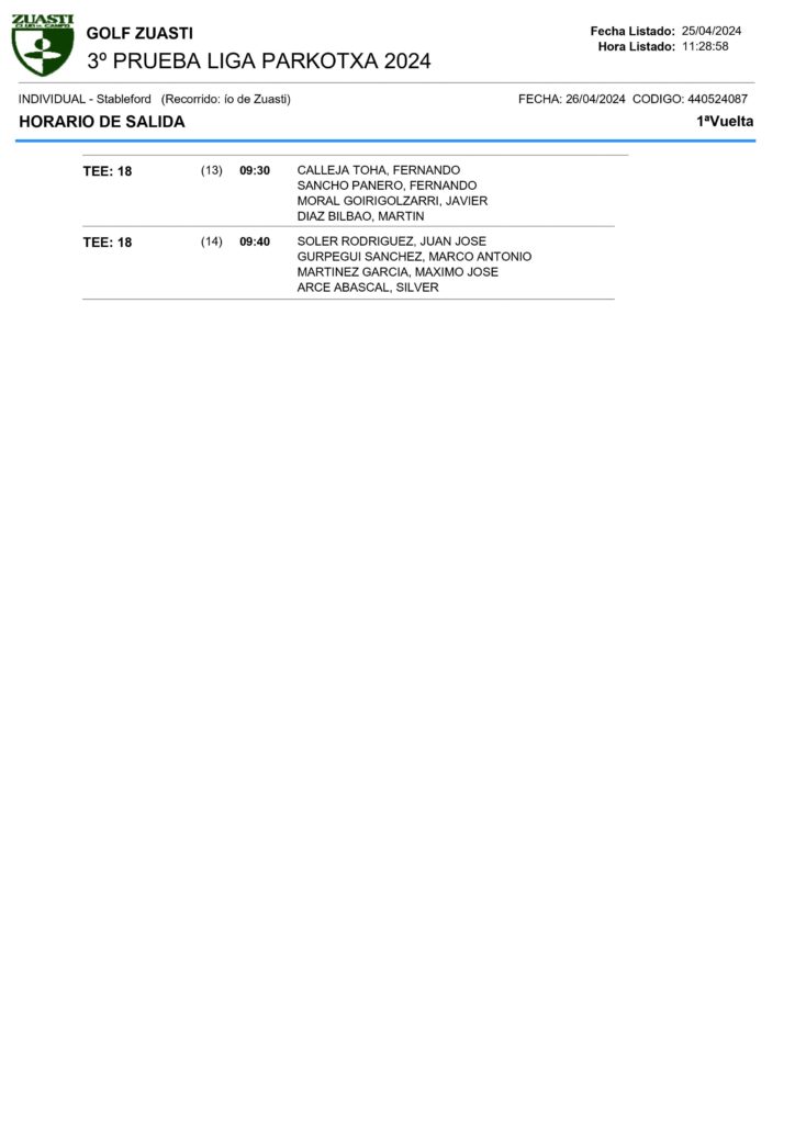 VI Liga Parkotxa. III Torneo. Club Golf ZUASTI 26 de abril 2024