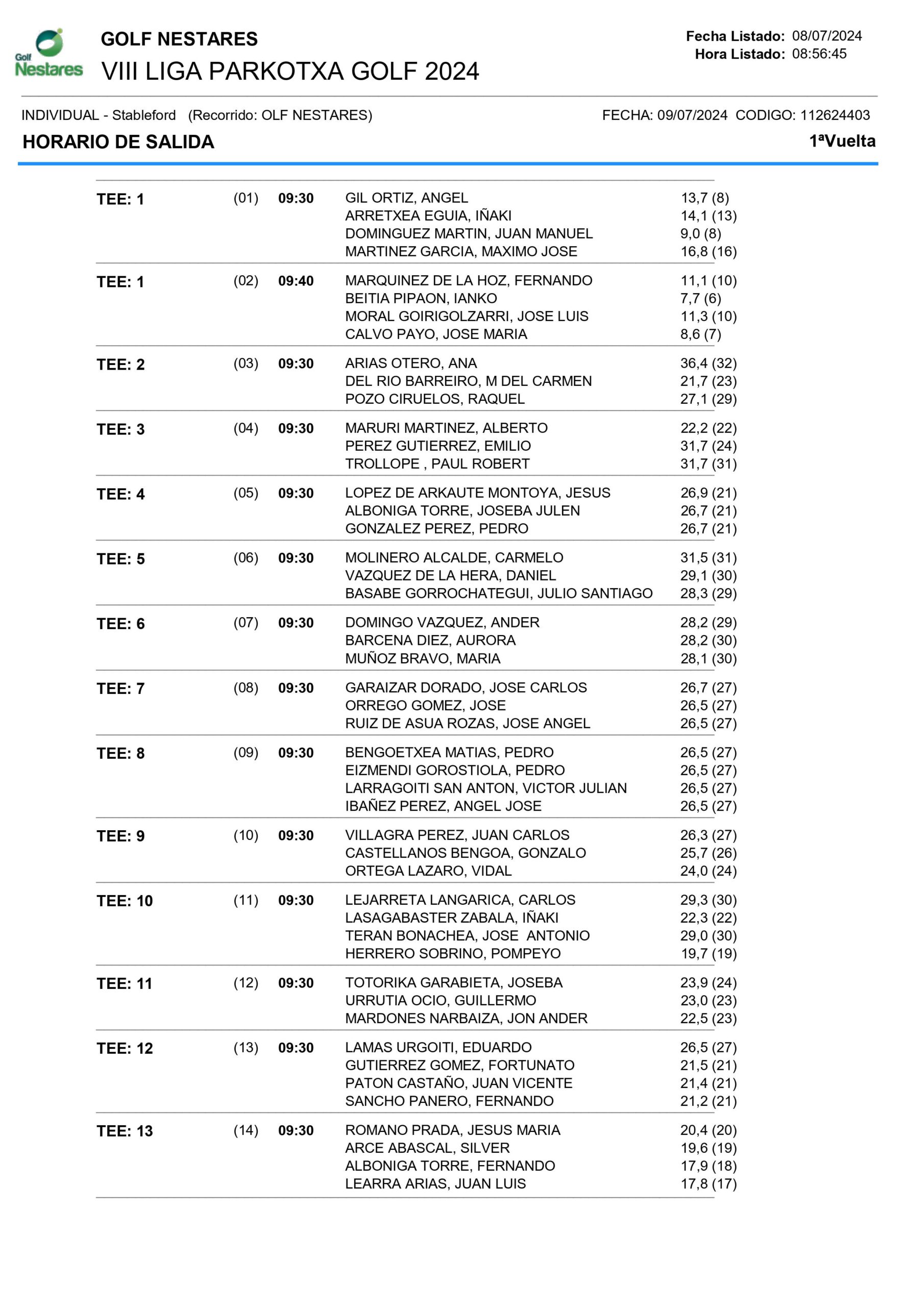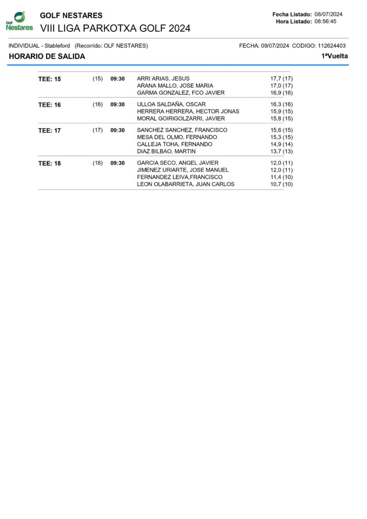 VI Liga Parkotxa. VIII Torneo. Club Golf Nestares 9 de julio 2024