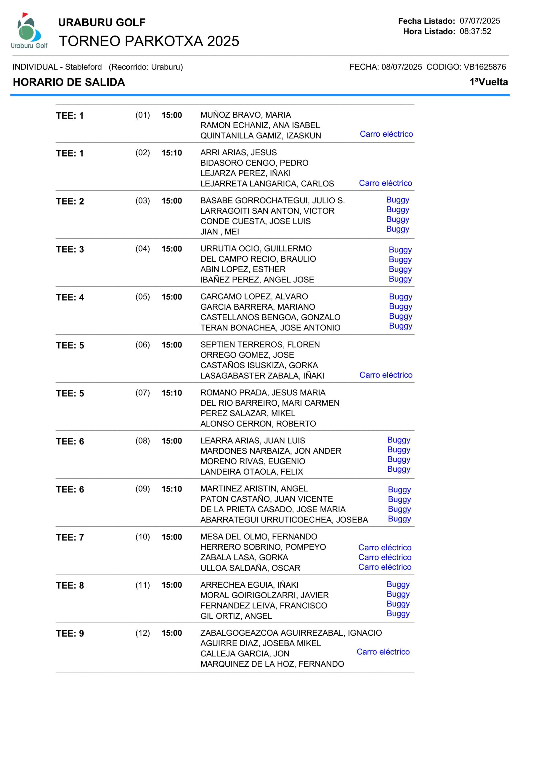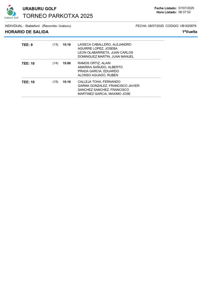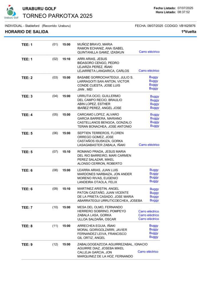 VII Liga Parkotxa. VIII Torneo. Golf Uraburu 8 de julio 2025