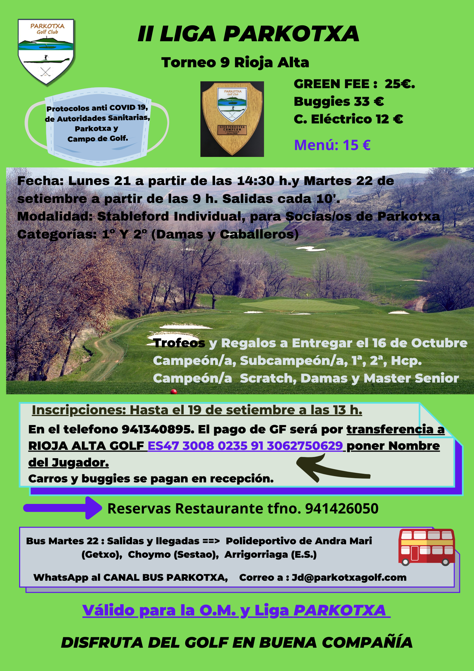 El torneo en Rioja Alta se celebra en dos días, las salidas a partir de las 14:00 H. hasta las 15:30 son del lunes día 21.