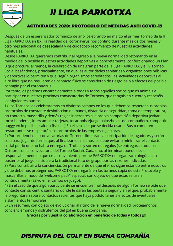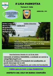 Tras la vuelta a las competiciones, se convoca el 3º torneo de la II Liga Parkotxa en Zuia , los días 13 por la tarde y el 14 de Julio, respetemos los protocolos establecidos.  Gracias