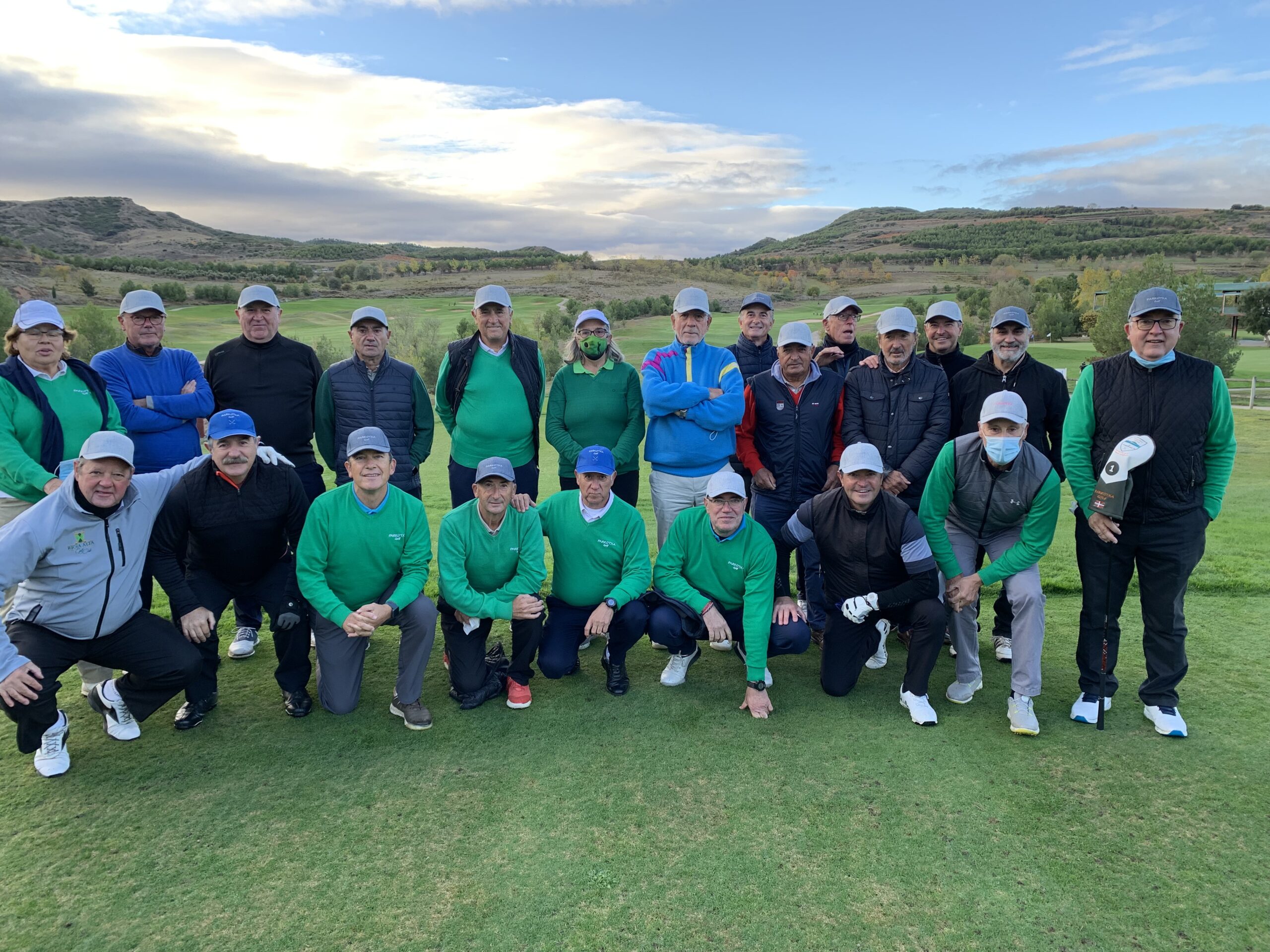 En el cuidado campo de Logroño celebramos el pasado jueves día 4 el II RETO entre PARKOTXA y nuestros amigos aragoneses de 5&3. Fue una alegría poder volver a encontrarnos después del paréntesis de 2020 para disfrutar juntos de una magnifica (aunque fría) jornada de golf en buena compañía y donde la satisfacción por el reencuentro superó con creces a la del resultado deportivo. Comimos juntos y muy bien en el cercano y concurrido Rte. La Grajera donde aprovechamos para entregar la Copa a PARKOTXA como equipo ganador de esta II edición, además del habitual intercambio de regalos entre ambos equipos.