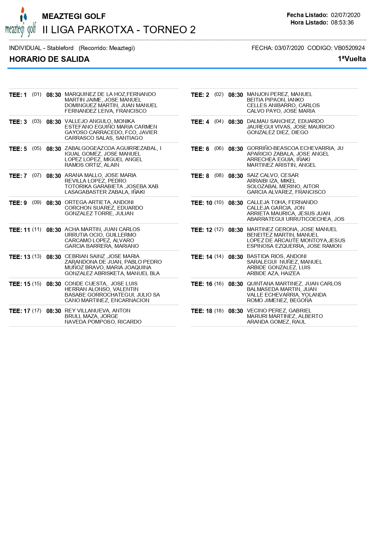 NOTA : Para evitar las aglomeraciones y según indicaciones de Meaztegi,