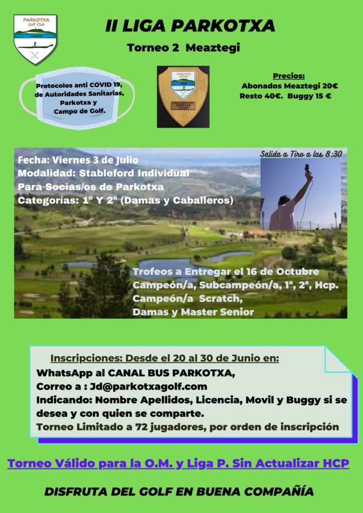 Retomamos la Liga Parkotxa, pero insistimos en cumplir los Protocolos Establecidos, Gracias.