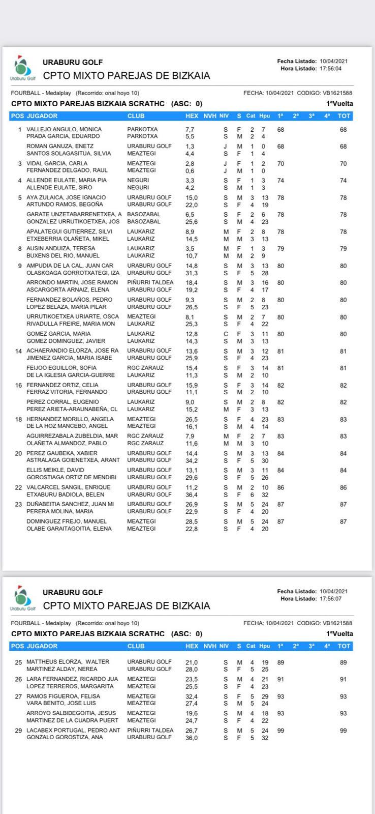 Los socios de Parkotxa Golf, Mónica Vallejo y Eduardo Prada han ganado el Campeonato de Parejas Mixto de Bizkaia celebrado hoy en Uraburu.