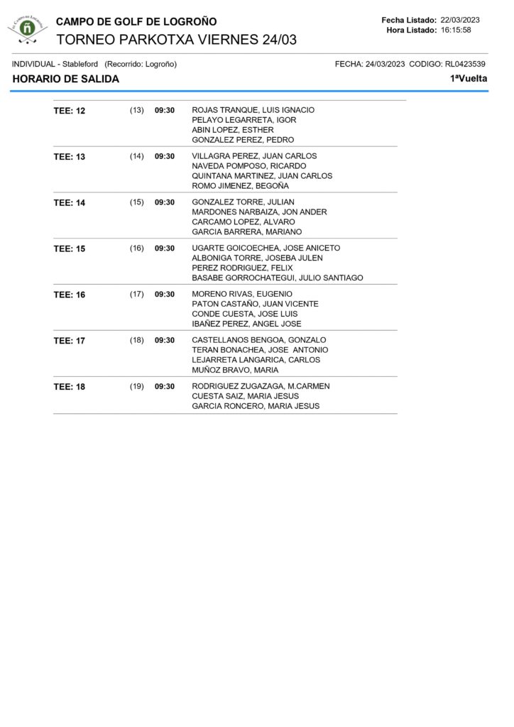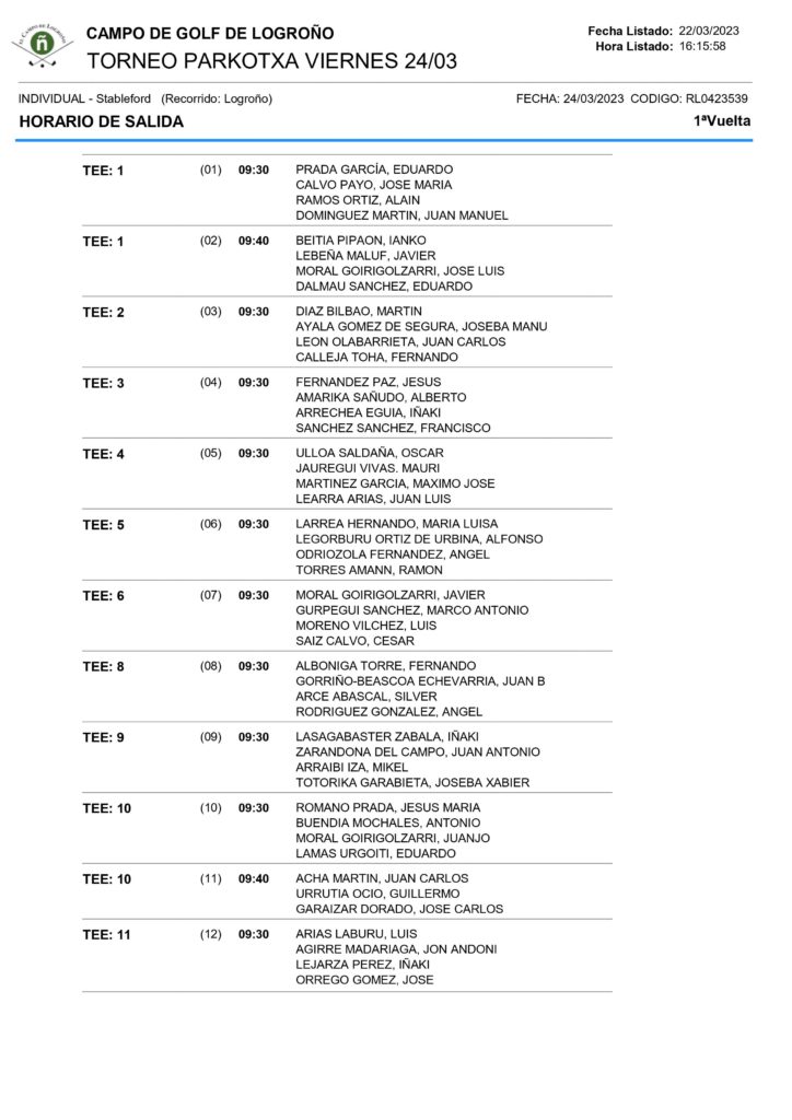 V Liga Parkotxa, I-Torneo Campo Golf de LOGROÑO «La Grajera», 24 de Marzo 2023
